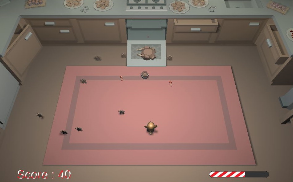 OverFoxmas est un mini jeu de type Shoot'em Up. Vous incarnez un renard dont la mission est de survivre aux attaques de biscuits en pain d'épices pour dévorer le gâteau
